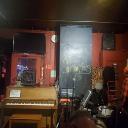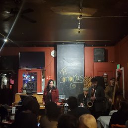 Checked out the Rite Spot to catch some live music on a Friday night, and had a wonderful time. Though it was moreseo due to the band playing this past weekend, The Cottontails, a talented group of musicians that play regularly here. They brought lots of energy to the place and wowed the crowd with their 20's/30's jazz and swing music. Their listed performance time was 8:00-10:30pm, but more accurately, they performed from 8:45-10:45pm (with a break in the middle) this past Friday. I was loving the incredible sounds of the bass, drums, piano, and saxophone, along with the remarkable vocals of Karina Denike throughout the entire night, a cool date night experience. The venue itself is not in the most inviting area (though at least street parking was easy to find), without much signage out front, so it doesn't look like much from the outside. Inside, it's dim and definitely divey, with a few bar seats, and tables wherever space allows, but it feels pretty crowded because it's a fairly small space, with an even smaller area for the "stage". But it seems to be a cool neighborhood bar, with interesting artwork on the walls, and decent service from bartenders and waitstaff who were attentive to our needs and requests, they served us some tasty drinks (Fizzy Rose, and Naked & Famous). And they have a food menu as well, looks like mainly burgers and itialian dishes. I'd return if there's a good band to see at the Rite Spot.